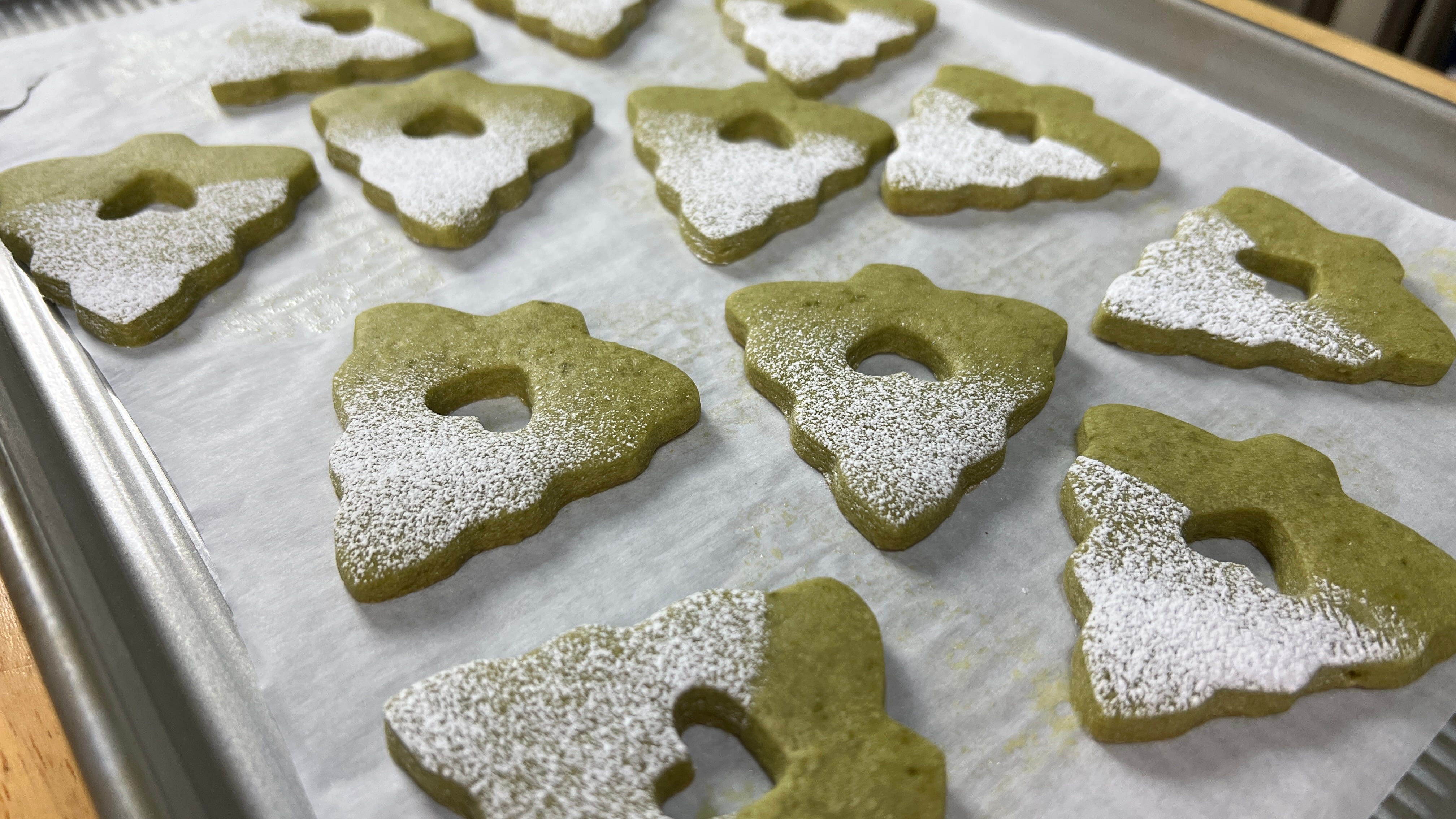 The cookies barely spread, so your Christmas tree shapes stay sharp and beautifully defined.