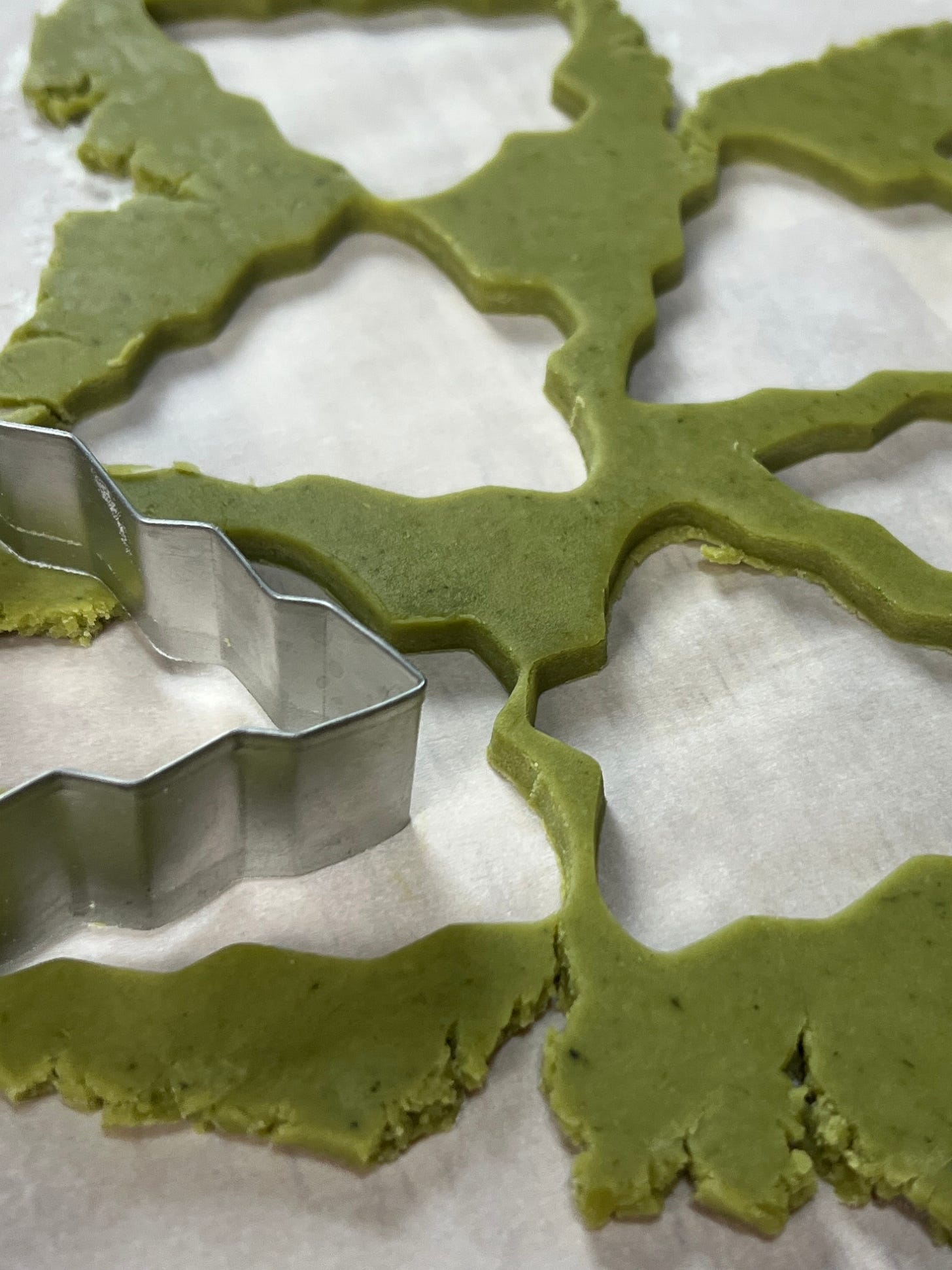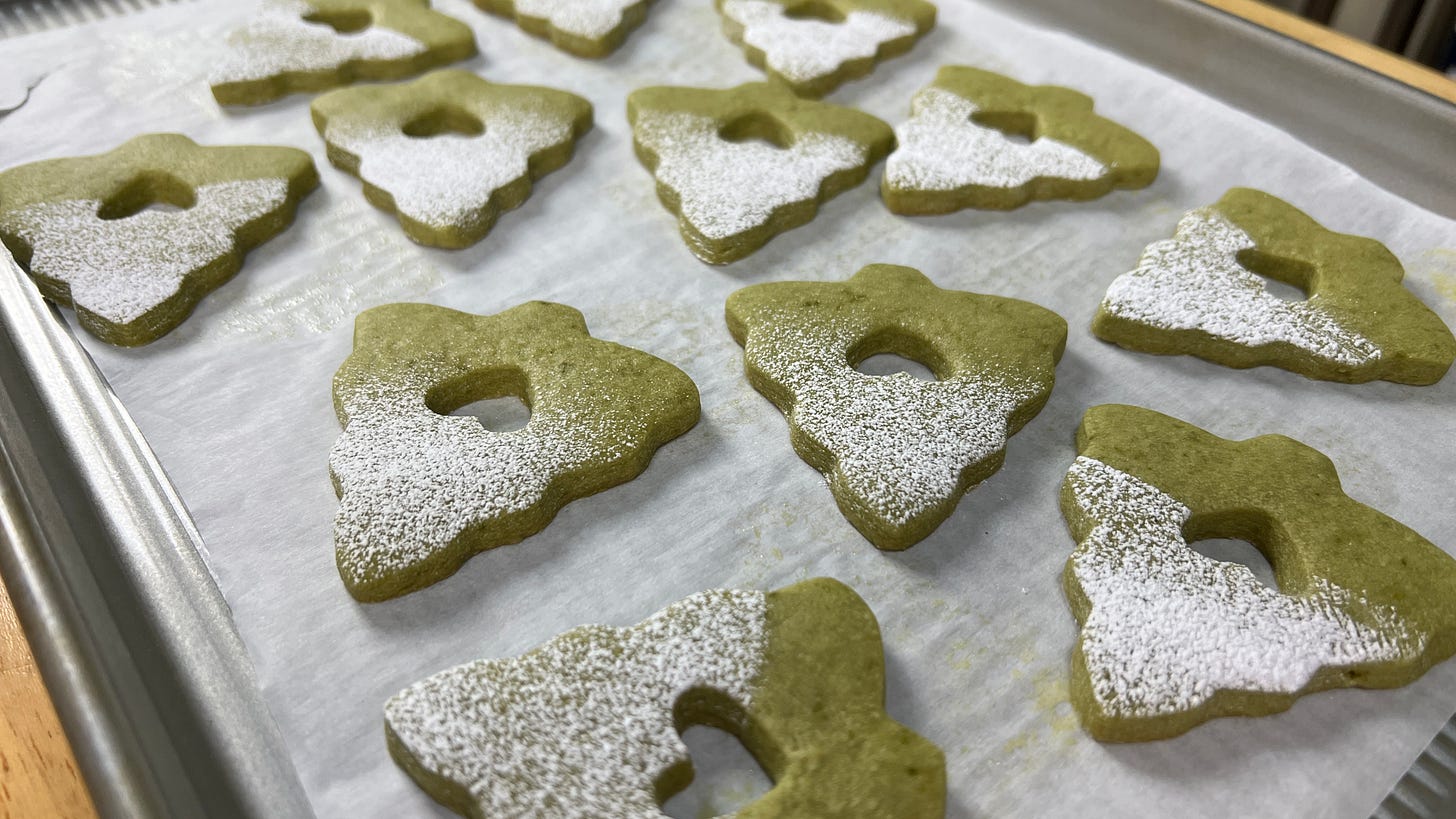 This recipe is a modified version of King Arthur Baking Company’s Matcha Christmas Tree Cookies.