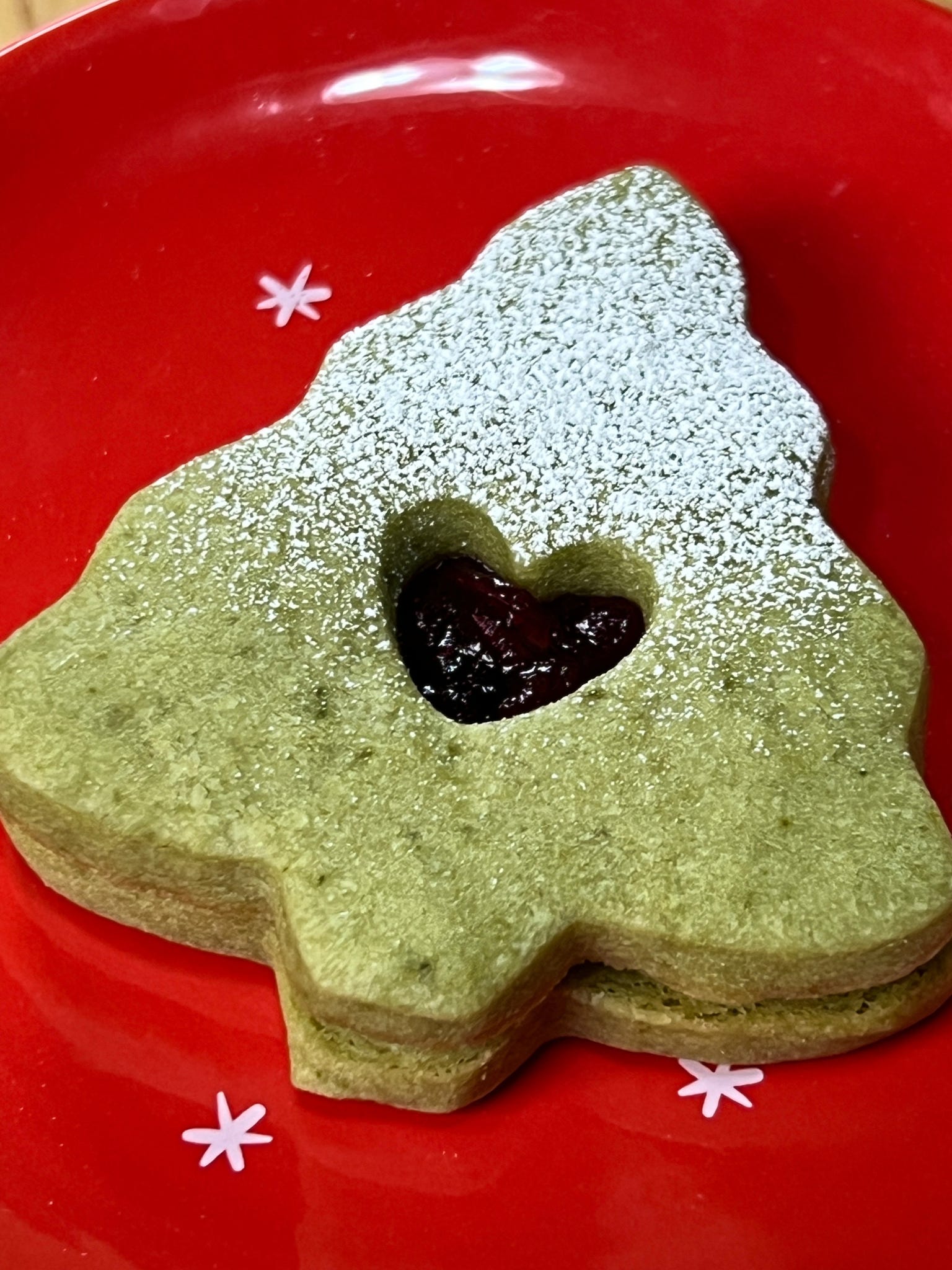 These Matcha Linzer Christmas Tree Cookies are where all those traditions meet. A classic European-style sandwich cookie, reimagined through a Japanese lens and filled with jewel-toned cranberry–orange jam because Christmas should always have something bright and tart at its center. The powdered sugar “snow,” the cutout trees, and the quiet elegance of matcha all come together in a cookie that feels both nostalgic and worldly. It’s the kind of bake that asks you to slow down, put on some music, and remember that the best Christmas traditions are the ones we carry with us, wherever we’ve been.