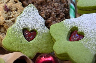 Matcha, Memory, and Holidays: Linzer Christmas Tree Cookies with Cranberry-Orange Jam
